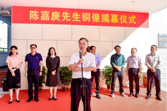 仪式上,郑志谦同志引用习近平总书记对陈嘉庚先生的评价赞誉陈嘉庚先生爱国爱乡、倾资兴学的事迹,表示嘉庚精神是我们学校的宝贵精神财富,希望广大师生能永远铭记嘉庚精神,弘扬爱国主义光荣传统,用实际行动践行新时代集大人的责任和担当。他还赞扬南通校友们捐建嘉庚铜像是集大学子弘扬嘉庚精神的具体体现,希望广大校友能一如既往关心、支持母校的建设发展,共同为母校新一轮发展贡献力量。陆元旦代表捐建校友讲话,表示学生时代一直受嘉庚精神熏陶,走出校门后也一直秉承“诚毅”校训做人做事,如今能有机会为嘉庚先生塑像感到非常自豪,希望今后能有更多机会为母校发展添砖加瓦,并勉励学弟学妹们要好好把握校园时光、努力提升自己,不负韶华。最后,郑志谦同志、陆元旦校友及在场领导共同为嘉庚先生铜像揭幕。