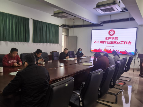 2023年2月22日,水产学院召开会议推进2023届毕业生就业工作。水产学院党委副书记黄庆胜、团委书记、毕业班辅导员和班主任出席会议。