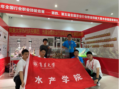 我院应邀作为“大赛+”活动—渔文化作品制作展示之一,展示了水族箱造景。黄文树副院长、水族协会指导教师王淑红老师带领协会造景部谢光辉、汪张印和唐卓同学克服时间紧、路途远和任务重的困难,出色展示了水族造景的过程和成景作品,通过现场和线上直播向公众和与会领导介绍了“水族造景工”这一崭新的职业工种,演示了其工作内容及职业特点。在全国水产技术推广总站的大力推动下,2022年《中华人民共和国职业分类大典》渔业行业职业将“水族造景工”列为新增工种。水族造景是在有限的空间内,以合理的美学规律,布置和利用水生物和非水生物特性,临摹自然和非自然效果的艺术。2014年以来,我院通过参赛和办赛,在全国大学生水族箱造景大赛中取得优异成绩,在水族造景人才培养方面成效显著。