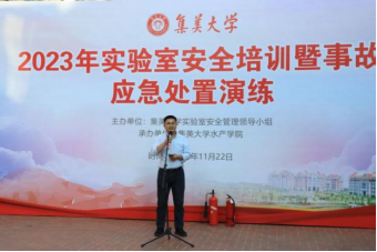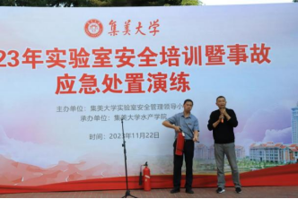 为进一步提高师生实验室安全意识、强化应急处置能力,11月22日下午,由校实验室安全管理领导小组主办、水产学院承办的2023年实验室安全培训暨事故应急处置演练在水产科技楼前举行。校实验室安全管理领导小组成员单位相关负责人、各二级单位分管领导、院级实验室安全管理员、实验技术人员和学生代表等参加了此次演练活动。活动由资产与设备管理处林亚梅副处长主持。