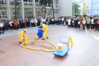 随后,水产学院开展实验室危险废弃物泄漏的应急处置演练。演练形象展示了危险废弃物泄露后现场人员的自救处置,院应急预案的启动过程及现场危险废弃物的泄露控制和处理过程。演练结束后,水产学院黄庆胜副书记对演练进行点评指出:此次演练检验了我院实验室安全事故应急预案的可行性和可操作性,增强了师生对实验室安全事故的应急处置能力,希望师生们以此次演练为契机,从思想上高度重视,从实验过程的各环节入手,把实验室安全工作做好、做实,进一步营造实验室安全文化氛围,将实验室安全工作理念深入人心,增强自身安全意识及应对安全事故的能力。