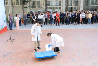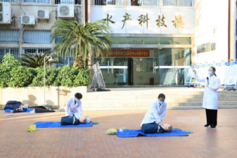应急演练后,校保卫处消防科卢辉泉科长现场详细讲解灭火器的正确使用方法。校医疗中心在现场为师生进行心肺复苏培训。