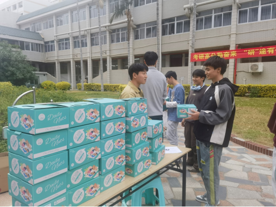 在2024年全国硕士研究生招生考试即将到来之际,为缓解考研学子压力,坚定冲刺信心,11月29日下午,水产学院在吴迪楼考研自习室前设置了考研加油站,开展考研慰问活动。聚创教育集团为学生精心准备了“考研加油包”,加油包中的坚果礼盒饱含学院对考研学子的真切祝福,预祝考研学子“坚”持到底,一鸣惊人。学院辅导员老师为考研学子发放“加油包”,向同学们了解备考情况,并叮嘱同学们在冲刺阶段要坚定信心,全力以赴,同时调整好心态与作息,以饱满的状态迎接考试。