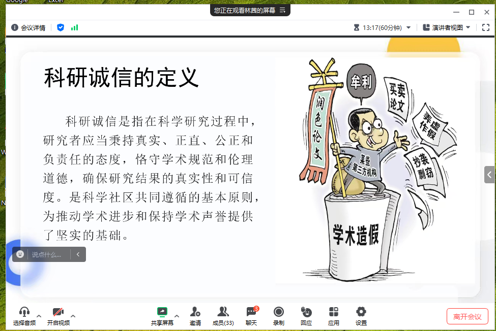 “科研诚信”主题月系列活动旨在提高我院研究生对学术不端行为的理解力和重视度,强化学术诚信与学术素养建设,树立底线思维,不弄虚作假,不抄袭剽窃,不捏造数据,能够自觉将学术诚信内化为科研生活的道德规范和蓝本,共同营造风清气正、求真务实的学术生态。