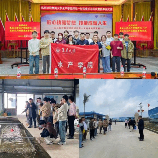 我校校友、福建天马科技集团股份有限公司副总裁何腾飞、全产业链办公室主任黄加龙、食品安全检测中心主任黄小兰、人力资源中心总监助理张晓玲等企业领导热情接待了学院师生一行。何腾飞介绍了企业发展历程,目前的业务范围、技术创新、人才需求等情况,并希望落实好校企交流合作,为企业选拔更多优质人才。学生就关心的岗位要求、职业发展路径问题进行提问。师生一行参观走访了企业种苗基地、饲料研发中心、烤鳗超级工厂等。
