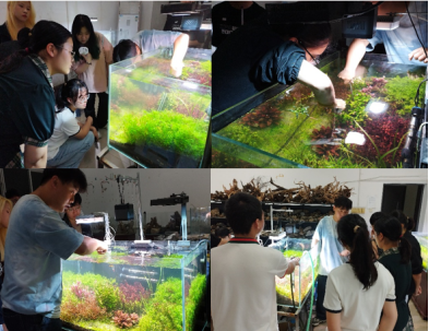 活动中,水族协会造景部的成员们详细介绍了水草的种类、修剪和种植等知识,现场指导并让同学实操体验了草缸的日常维护等技能。参加活动的同学们纷纷表示,每月一次的“水族造景小课堂”活动给同学们提供了一个水族造景的科普教育平台,丰富了同学们的水族造景知识,培养了同学们的创新设计能力和实践动手能力。