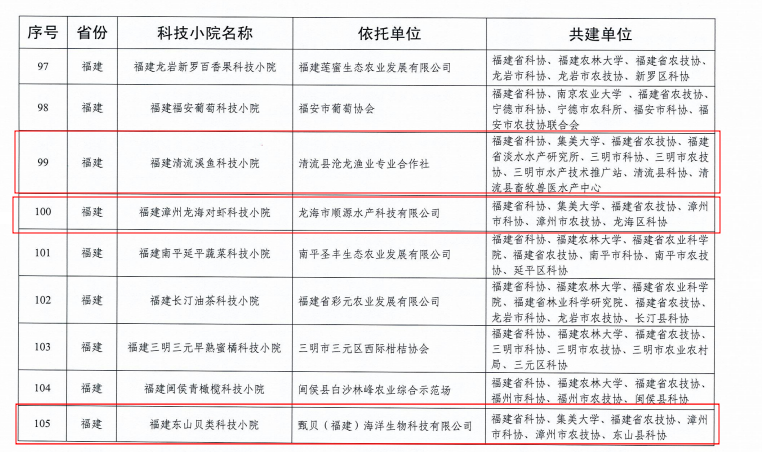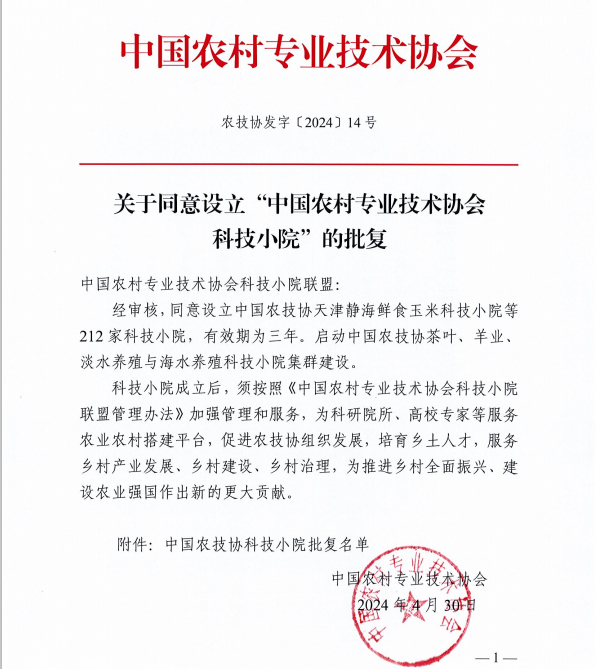 日前,中国农村专业技术协会下发了《关于同意设立“中国农村专业技术协会科技小院”的批复》(农技协发字【2024】14号),我院作为牵头共建单位的“福建清流溪鱼科技小院”、“福建漳州龙海对虾科技小院”、“福建东山贝类科技小院”等3个科技小院成功入选中国农村专业技术协会科技小院。