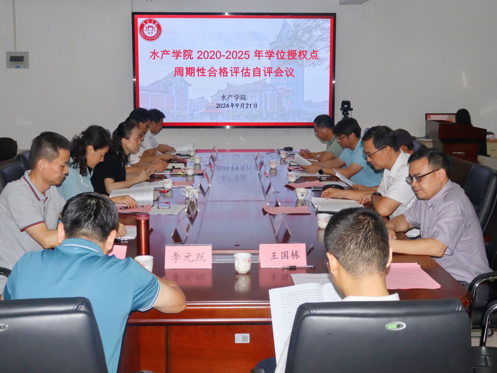 张春晓在会上致欢迎辞,对专家组一行表示了热烈的欢迎和衷心的感谢。蔡苗介绍了我校学位授权点自评工作方案。张春晓代表学院汇报了水产、生物学 2020年至今学位授权点周期性建设总结情况,从学位授权点基本情况、自我评估工作开展情况、持续改进计划三个方面进行了全面详细的汇报。专家组认真听取了学院的汇报,仔细审阅了相关材料,进行了质询评议与讨论。专家组认为,学校突出水产一流学科的特色优势,在发展目标、基本条件、人才培养、社会服务等方面取得了实质性的成效,实现了人才培养目标,一致同意水产博士学位授权点、生物学硕士学位授权点通过合格评估,同时也对学位点课程建设、学术交流、实践基地、奖助体系等方面提出了建设性的意见和建议。
