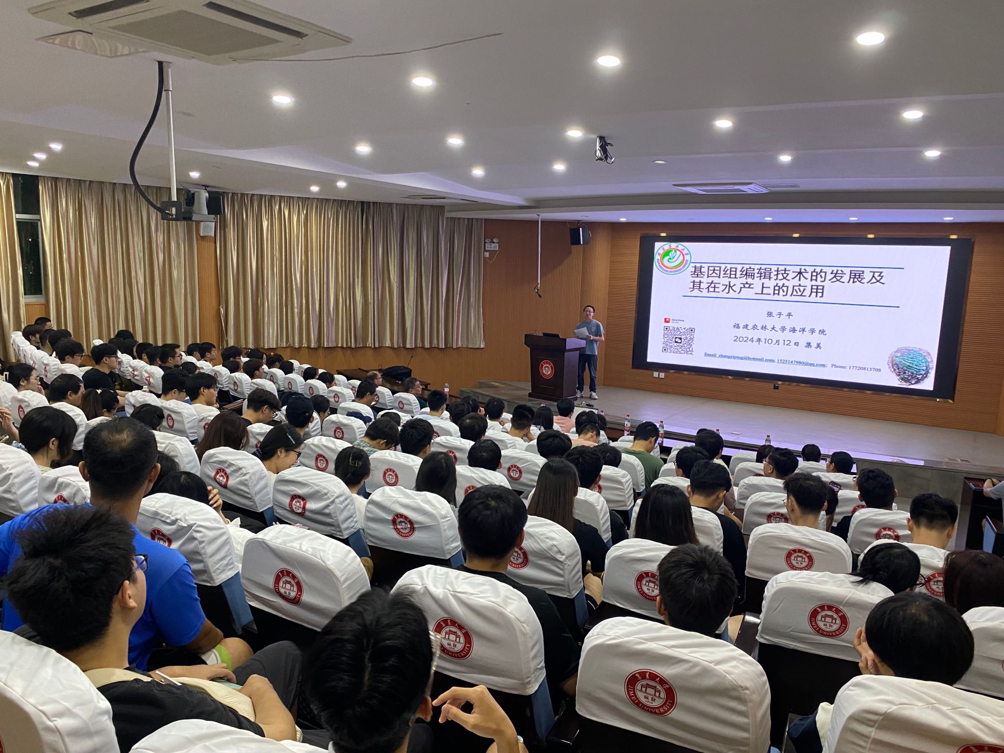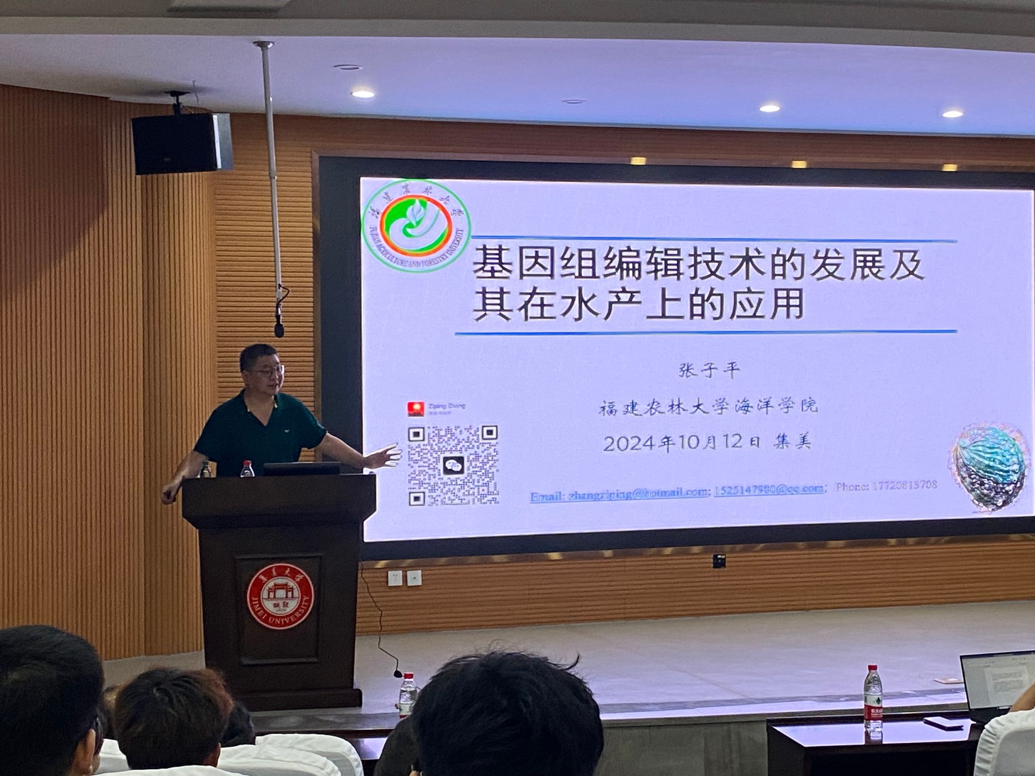 10月12日晚,闽江学者、福建省高校领军人才、福建农林大学张子平教授应邀来我院开展了题为“基因组编辑技术的发展及其在水产上的应用”的主题报告。本场讲座由水产学院邹鹏飞副教授主持,近200名师生参加了会议,现场座无虚席。