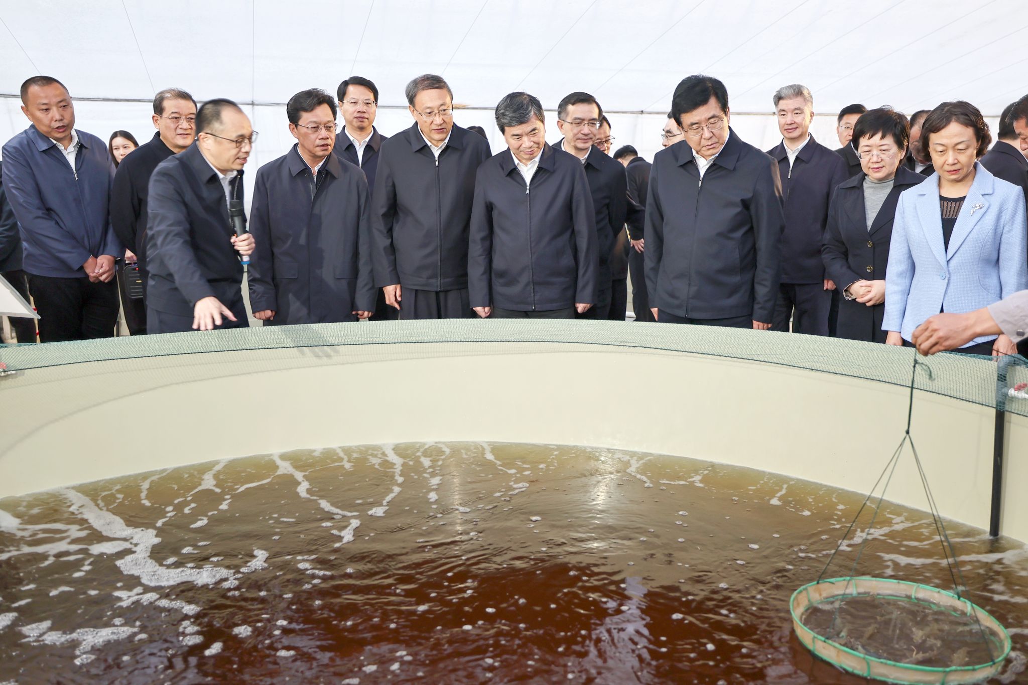 10月23日下午,省委书记、省人大常委会主任周祖翼,宁夏回族自治区党委书记、人大常委会党组书记李邑飞,省委副书记、省长赵龙,自治区党委副书记、自治区主席张雨浦带队实地调研我校位于银川市贺兰县蓝湾生态农业公司的“海鱼陆养”中试基地。
