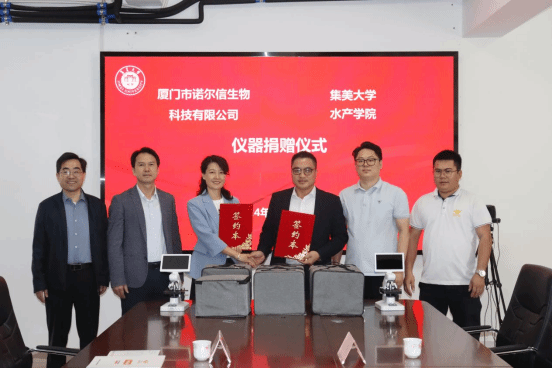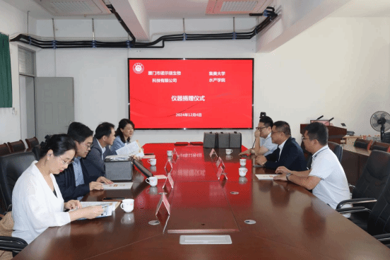2024年12月4日,厦门市诺尔信生物科技有限公司向我院国家级教学示范中心捐赠一批显微镜,学院党委书记张井文、副院长姜永华,厦门市诺尔信生物科技有限公司总经理蒙显杰、CAIE中国水产养殖产业博览会总经理陈亮等参加捐赠签约仪式。