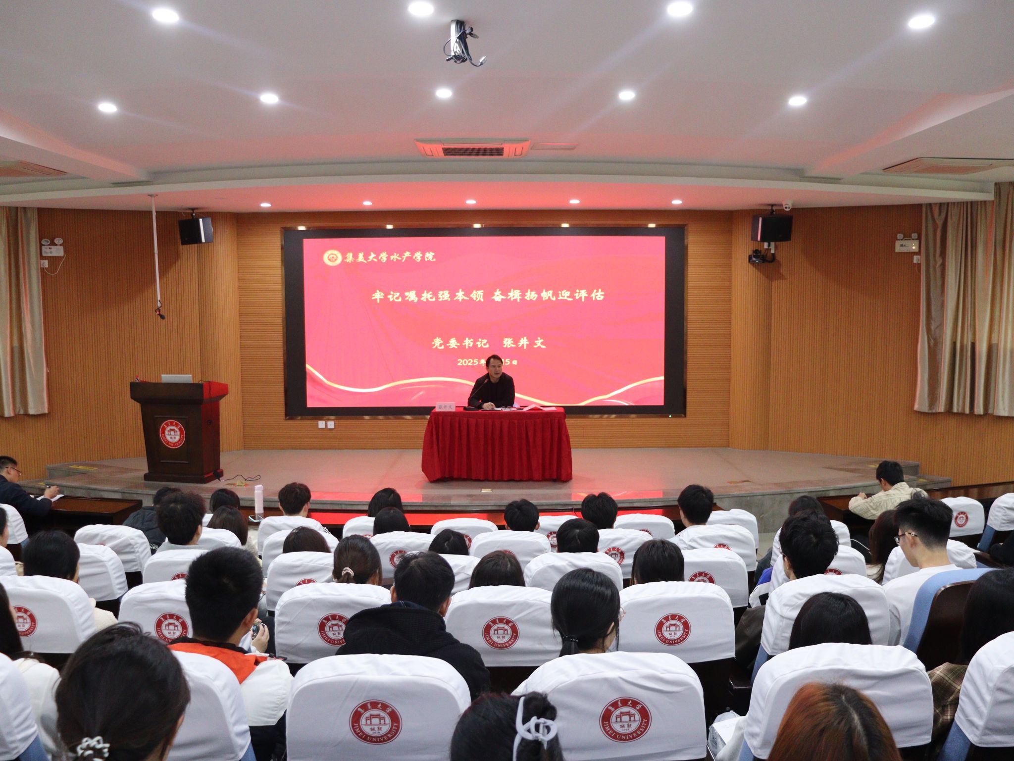 3月15日上午,水产学院党委书记张井文以“牢记嘱托强本领,奋楫扬帆迎评估”为题为水产学院学生干部代表和第三期“青马班”学员讲授专题思政课,学院全体政工干部参加了会议。