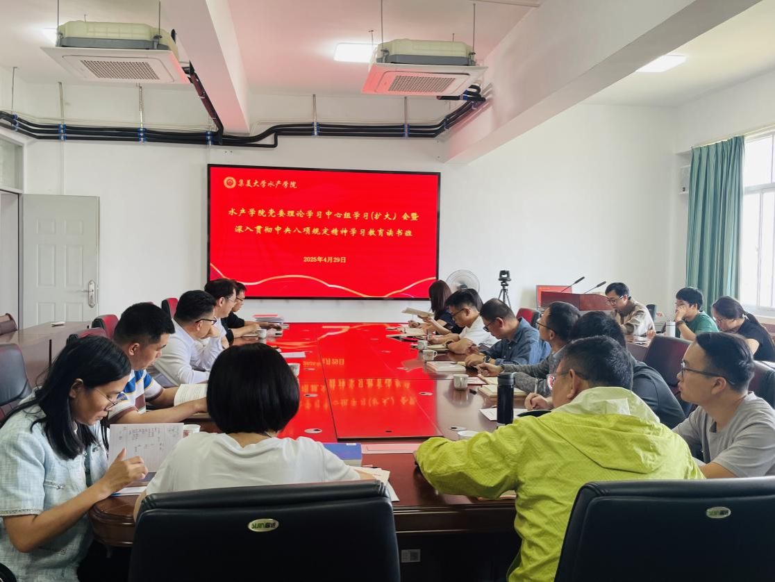 4月29日下午,水产学院召开党委理论学习中心组(扩大)学习会暨深入贯彻中央八项规定精神学习教育读书班,学院领导班子成员、科级干部、辅导员、党支部书记参加会议。会议由学院党委书记张井文主持。