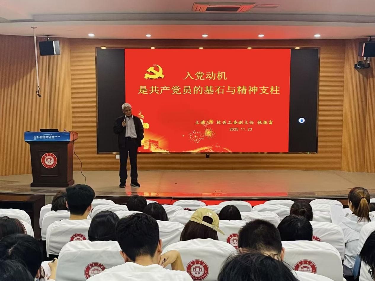 张振富围绕“端正入党动机的涵义与重要性”“大学生入党动机表现及原因分析”“正确的入党动机及其内涵”和“端正入党动机的主要路径”四个方面展开系统讲解,强调指出正确的入党动机是思想入党的根本要求,更是党员政治生命的“总开关”。并结合多年高校思想政治工作经验,深入剖析了当前大学生在入党动机中存在的认识偏差,引导同学们要不断叩问、端正入党初心,深入思考“入党为了什么、入党要干什么”,真正做到从思想上认同党的纲领、在行动上践行党的宗旨,在同学中起到模范带头作用,以实际行动向党组织证明自己的追求和信念,争取早日站在党旗下庄严宣誓,成为一名光荣的中国共产党党员。