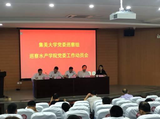 按照校党委的统一部署,校党委巡察组对水产学院开展巡察工作。4月29日上午,巡察工作动员会在水产综合楼1楼报告厅召开,校党委巡察组全体成员,学院领导班子成员、各科室负责人、支部书记、副高职称以上教师等参加了会议。会议由院党委书记范惠莹同志主持。