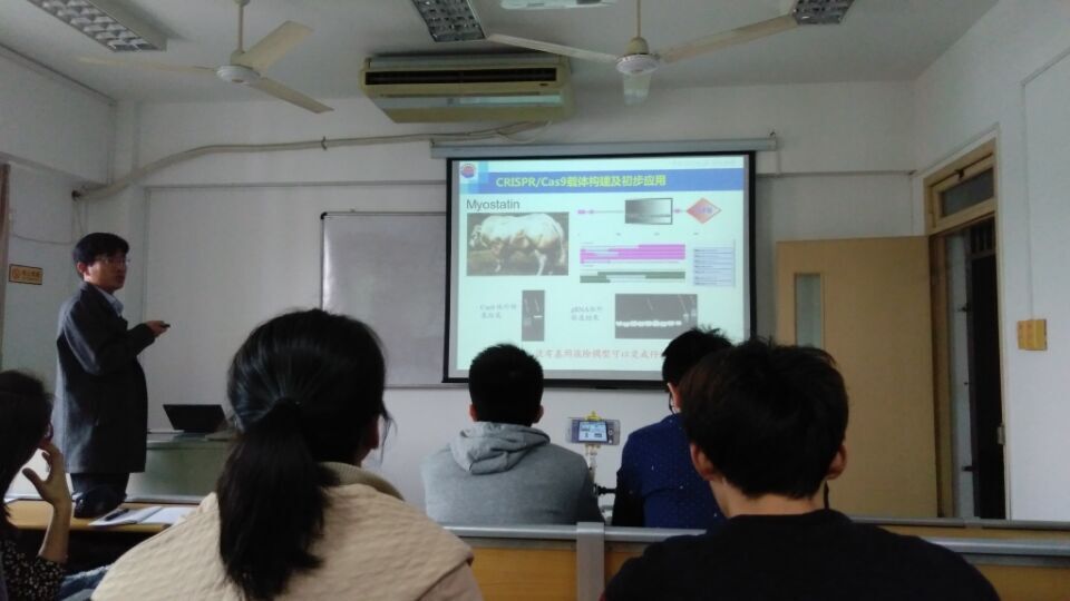 2016年11月25日上午9点30分,应水产学院邀请,中国科学院海洋研究所张继泉副研究员在水产学院综合楼706教室作了题为“CRISPR/Cas9技术在脊尾白虾基因组编辑中的应用”的学术报告。学术报告会由张春晓副院长主持,水产学院师生共60多人参加了报告会。
