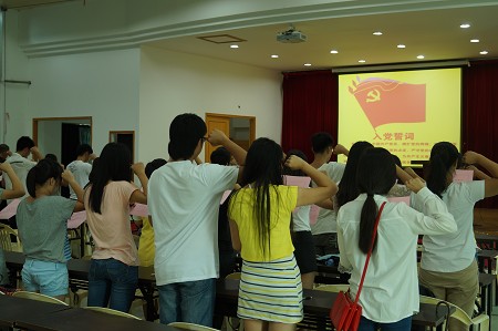入党宣誓仪式在庄严的《国际歌》中开始。39名新党员在院党委秘书林伟强的带领下,面向党旗庄严宣誓;院党委委员、办公室主任罗桂玲担任监誓人。入党宣誓后,新党员代表张宇同学发言。他表示要始终不渝地以一名共产党员的标准严格要求自己,终身践行入党誓言,要自觉肩负起“努力实现中华民族的伟大复兴”这个光荣而伟大的神圣使命,志存高远,增长知识,锤炼意志,在学习和工作中起到先锋模范作用,为实现伟大的“中国梦”努力奋斗。