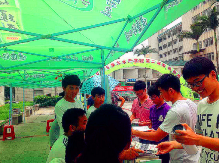 为倡导绿色环保生活,增强大学文明消费意识,5月30日,水产学院在第九餐厅门口举办跳蚤市场活动。