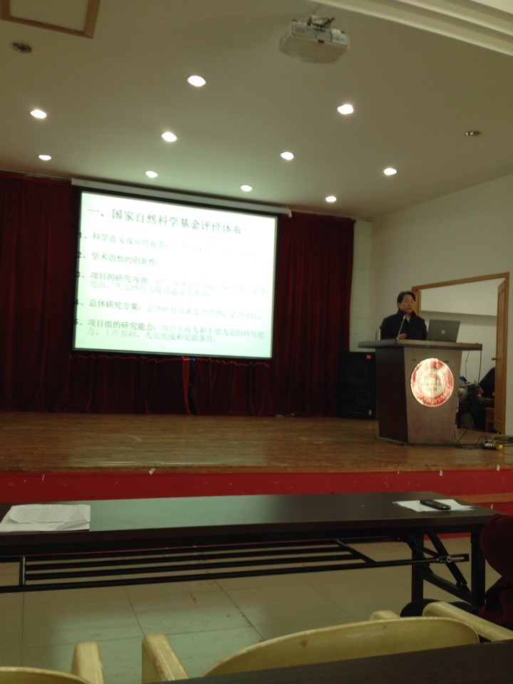 黎中宝教授首先分析了国家自然科学基金评价体系,接着从选题、摘要、立项依据、研究内容、研究目标、研究方案、可行性分析、工作基础等十六个方面进行了深入浅出地阐述,重点强调了基金申请书的撰写技巧和立项的特色创新。最后,黎中宝教授指出,在十八届三中全会深化科技体制改革,鼓励科技创新,政府加大对基础性、战略性、前沿性科学研究支持的大背景下,希望全院教师特别是青年教师潜心基础科研,积极申报,精心论证,突出创新性和前瞻性,并期待2014年我院的国家自然科学基金等基础研究工作取得新的突破。