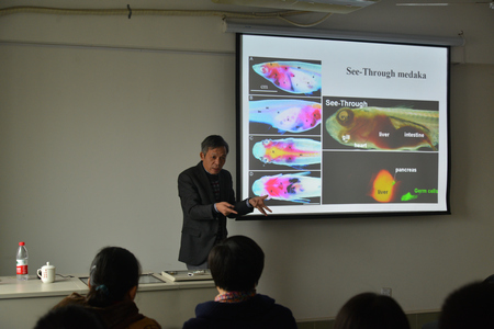 报告中,洪云汉教授主要介绍了研发抗病良种生物工程的两种不同的方法,阴策和阳谋。阳谋是指直接针对病毒或拮抗因子的途径;阴策是指抑制或敲除宿主因子,宿主就不能再被病毒感染了。洪教授生动有趣地讲述了如何找到和识别宿主因子以及如何抑制和敲除宿主因子,并且阐述了这项技术如何在水产生物中应用。最后,大家就自己感兴趣的问题积极向两位专家提问,进行了热烈、深入地探讨。