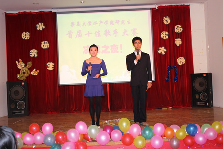 11月30日晚七点,水产学院研究生期待已久的首届研究生十佳歌手大赛(决赛)在水新综6楼拉开帷幕。水产学院科研秘书翁潞梅老师、校研究生会副主席等担任大赛嘉宾。