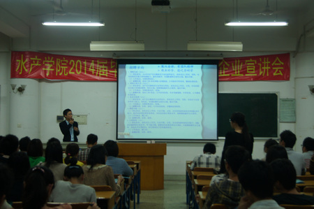 为推进学院毕业生就业工作,11月1日至2日,水产学院举办2014届毕业生就业双选会。双选会由校企座谈会、企业宣讲会和现场招聘三个部分组成,农标普瑞纳(漳州)饲料有限公司等21家企业到会参加招聘。