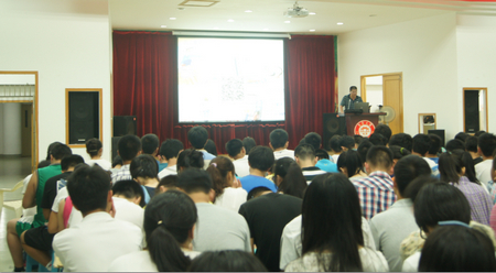 9月9日,水产学院邀请校保卫处董振寿副处长为2013级新生做《关注安全 珍惜生命》讲座,讲座由院党委副书记郁军态主持。