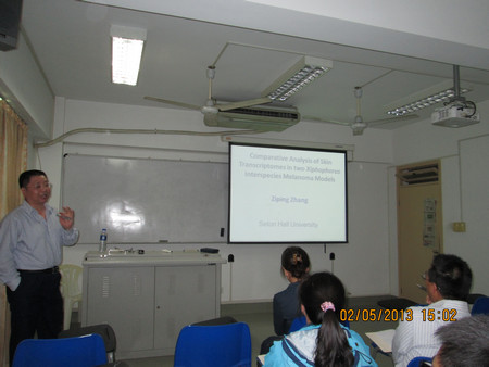 2013年5月3日下午,闽江学者讲座教授张子平博士应邀来水产学院作了题为《Comparative Analysis of Skin Transcriptomes in Two Xiphophorus Interspecies Melanoma Models》的学术报告。水产学院多位从事转录组研究分析的老师和研究生参加了此次交流活动。