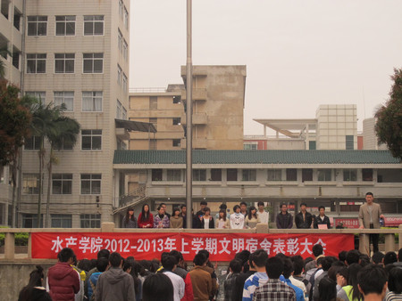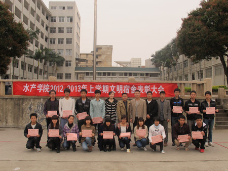4月1日,水产学院召开2012-2013学年第一学期文明宿舍表彰大会,大会由院党委副书记郁军态主持,相关老师、辅导员参加了会议。