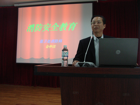 金科长从消防安全法律法规、消防安全基本常识、火灾案例介绍和灭火器使用等四个方面进行了详细的讲解。金科长语言幽默,深入浅出,讲解中穿插视频,形象生动,令大家印象深刻,全场不时发出热烈的掌声。最后,郁军态副书记作了总结,他希望大家从思想上重视消防安全,消除身边的安全隐患,掌握安全消防知识,防范于未然。
