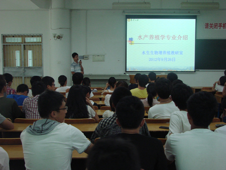 学院还组织召开专业介绍会,由教研室主任或学科带头人主讲,分别就专业设置、专业前景、就业方向等多方面给予新生指导,帮助他们树立学习目标,明确学习目的,为更好的适应大学学习生活、更好的规划人生道路打下坚实基础。迎新大会后,使2012级新同学加深了对水产学院的了解,对他们今后的学习生活有很大的指导意义。