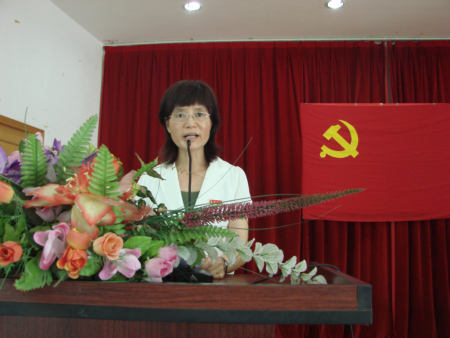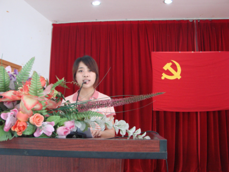 宣誓后,新党员代表熊迎迎同学发言,她表示要始终不渝地以一个共产党人的标准严格要求自己,终身践行入党誓言,加强党性修养和理论学习,不断提高自身思想道德素质和科学文化素质,争做一名优秀共产党员。
