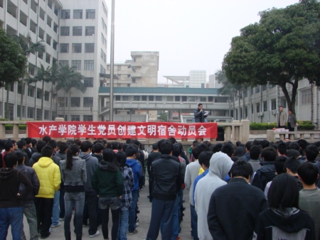 3月5日,水产学院召开学生党员创建文明宿舍动员会,会议由院党委秘书林伟强主持,全体学生和政工干部参加了此次会议。