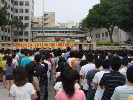 9月19日,水产学院利用国旗下讲话时间,召开2010-2011学年第二学期文明宿舍表彰大会。大会由院党委副书记郁军态主持,相关老师、辅导员参加了会议。