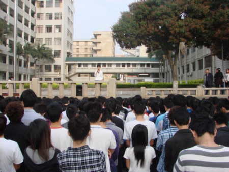 4月25日清晨,升旗仪式结束后,院党委书记黄爱斌向全院学生作了迎评创建工作动员。讲话中,黄爱斌指出创建文明学校要以校园安全为基本前提,要求全体学生要从文明举止、宿舍卫生、教室课堂秩序及校园文化活动等方面,“从我做起,从身边小事做起”,针对薄弱环节,强化措施,以主人翁意识投入到迎评创建工作中。