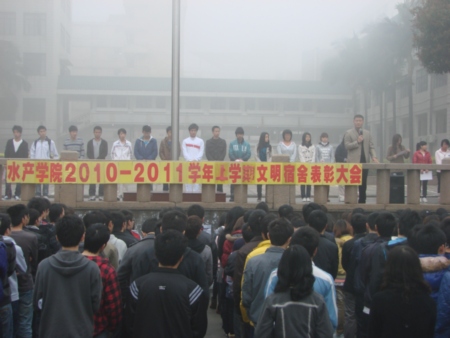 3月21日,水产学院召开2010-2011学年第一学期“文明宿舍”建设表彰大会。大会由院党委副书记郁军态主持,相关老师、辅导员及全院学生参加了大会。