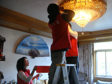 12月26日上午8点,志愿者们来到了水院退休老教师家,与他们拉家常,谈生活,以实际行动帮助退休教师解决生活中的困难。当得知退休后仍热心发挥余热的教学督导组的黄老师,由于行动不便,正缺人手需要对家里天花板的一盏大型水晶吊灯进行拆洗工作时,志愿者们立刻就开始投入到灯具清洗工作,大家分工合作,拆,洗,递,装,工作有条不紊地进行,很快,黄老师的家里干净整洁,焕然一新。活动结束后,黄老师热情地与志愿者们握手交谈,师生情谊进一步加深。
