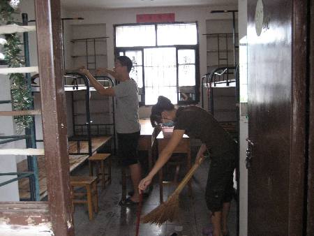 此前,学院就对迎新工作进行周密部署。一是发动党员、学生干部清洗新生宿舍,做到床铺、桌椅、地板不留尘。报到当天,往年家长们擦拭床板的繁忙景象和宿舍条件差的抱怨不见了,代之以家长间悠闲的谈笑风生。二是多次检查宿舍物品破损和安全情况,及时向社区保修,做到新生入住不麻烦。三是组织宿舍安全巡逻队,定时到宿舍巡逻,保障新生入住后的财产安全。四是做好交通疏导安排,临时开辟篮球场为停车场,设置多块交通指示牌,引导车辆到停车场停车,使水院院区车辆进出顺畅,井然有序。五是设置咨询点,及时引导和处理新生报到遇到的困难和对所学专业的困惑。工作人员帮助新生扛行李,带领新生办完入学手续和入住宿舍。六是布置彩条彩旗和横幅,更新宣传栏,合理设置各类接待点和报到窗口,做到院区指示标识明显清晰、宣传氛围喜气洋洋。