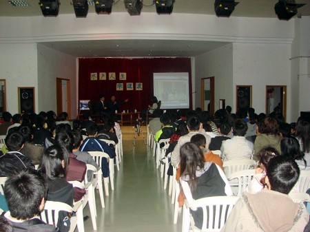 照着柔和的灯光,伴着和谐而轻淡的音乐,结合图文并茂的ppt、视频,常教授深情地回忆起少时勤奋读书的情景,文革那段艰苦的岁月;问到留学日本及创业经历,常老师言语中充满了信心与热情;谈到科研与教学,他表示坚持把教学摆在第一位;谈及家庭,常老师则露出一脸的自豪。访谈过程中,嘉宾与主持人幽默风趣的语言得到了同学们阵阵掌声。最后,常老师与在座的同学们分享了立志、创业、修身养性等几点想法,并就同学们的问题一一作出回答。