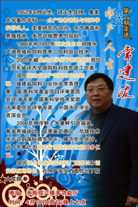 4月18日晚,由水产学院分团委主办,中国水产学会集美大学学生会员工作站、集美大学海洋与渔业协会及水院学生会承办的访谈节目《水产人生》在水新综六楼多功能厅举行。首期节目邀请的嘉宾是水产学院硕士生导师、水产动物营养与饲料学科带头人常建波教授,参加节目的有各年级学生及研究生。