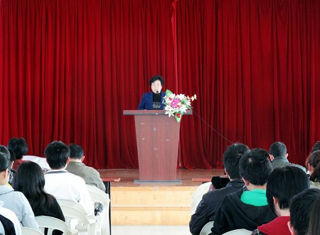颜素芬教授喜悦地评价了历年来水产学院学生科研立项申报工作取得的成绩,表扬了学生开阔的知识视野及敏锐的科研意识,随后指出了部分申报科研项目存在的盲点与不足。她对申报及完成科研立项的具体流程、本科08级同学如何参加科研立项,如何选择合适的项目、研究生如何提高科研水平及创新能力等问题做了详尽的解答。她要求同学们以饱满的热情投入到科研立项中去,使自己的专业知识学以致用,为水产事业贡献自己的力量。