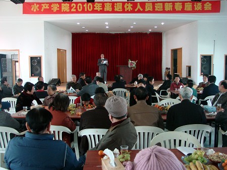 1月15日上午,水产学院在院多功能厅举办了离退休人员迎新春茶话会。原水院离退休老领导、老同志约30人到场,学院党政领导及中层干部参加了茶话会。会议由院党委书记邱邑亮主持。