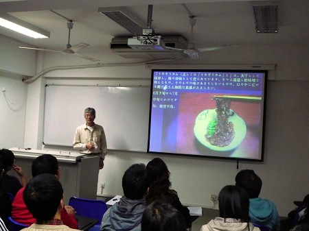 近日,水产学院邀请日本东京海洋大学博士、教授田中次郎为水产学院师生作了“日本的食用海藻”学术报告。水产学院副院长黎中宝教授主持学术报告会。报告现场气氛非常热烈,后来的同学虽然没有了座位,但毫不削减他们聆听的兴趣。