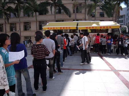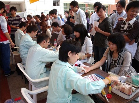 由于厦门市血库A型血告急,受厦门市红十字会委托,11月26日,水产学院青年志愿者协会与集大红十字会在水产学院第九餐厅广场组织开展无偿献血活动。