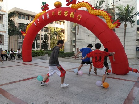 各社团踊跃参与,都精心准备了各种节目,既有捞鱼、小李飞镖、贴鼻子、夹弹珠等个人活动,也有抓泥鳅、踩气球这样的团体游戏。精彩、有趣的活动得到了广大同学积极参与。此外,组织方还为观众准备了抽奖活动,精美的礼品给观众带来了不少惊喜。现场气氛热烈,取得了良好的效果。