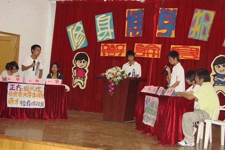 喜迎建国六十周年,10月10日,水产学院举办了新生“修身博学报国”辩论赛。