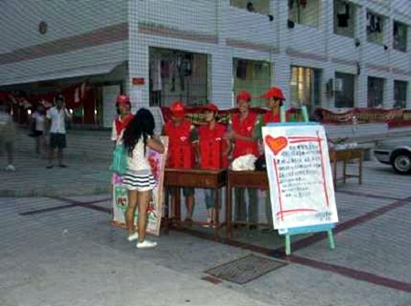 近日,为响应校团委的号召,帮助我校理学院数学0711班白血病患者叶琼兰同学早日渡过难关,水产学院青年志愿者协会组织数十名志愿者在第九餐厅门前广场为其举行爱心募捐活动。此次活动得到了水院第四社区同学的积极响应,他们纷纷捐款献爱心。短短两个小时共募集资金820.3元,为叶琼兰同学送去了爱心和希望。此次捐款活动充分体现了我校院系之间的团结互助精神,也充分体现了莘莘学子的素质和社会责任感。
