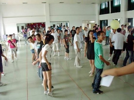 9月20号上午,水产学院水新综六楼多功能厅欢声笑语、激情四射,水院心理健康协会组织的心理素质拓展训练活动正在进行。09级的广大新同学积极参加了此次活动。活动中依次进行了“破冰”、“数青蛙”、“传递气球”、“瞎子背瘸子”“找队友”等游戏,游戏迅速调动了大家的热情。本次训练活动不仅丰富多彩,而且紧扣拓展心理素质的主题,让成员们感受到了心理素质拓展训练营别样的气氛。
