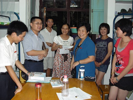 水产学院高度重视迎新系列工作,在新生报到当天晚上7:00,院党委副书记颜素芬教授不顾疲劳,带领院学生工作领导小组成员、新生班级导师及班级助理一行走访了30间新生宿舍。
