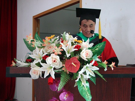 典礼上,副院长黄世玉宣读了2009届毕业生以及获得农学士和工学士学位毕业生名单,副院长纪荣兴宣读了2009届校优秀毕业生名单。省级优秀学生干部、校优秀毕业生骆曼娜同学及教师代表、省五四奖章获得者鄢庆枇教授分别在会上发言。校、院领导和导师们分别为毕业生颁发毕业证书和学士学位证书以及优秀毕业生证书。